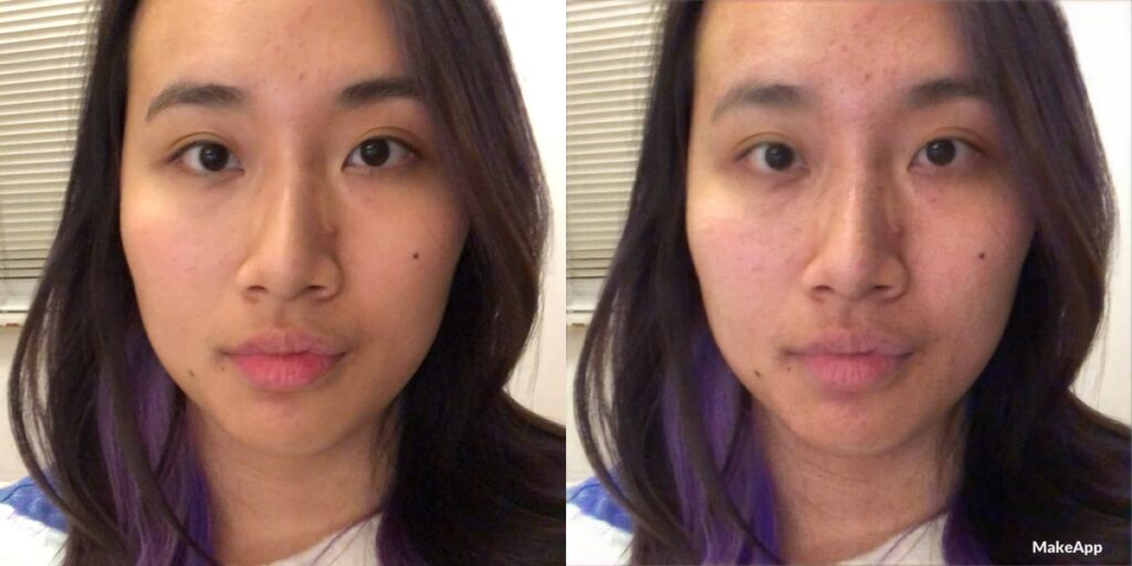 Según la experiencia de la autora, los resultados de MakeApp al quitar el maquillaje de sus fotos no la mostraron "tal cual es" sin maquillaje. En lugar de eso, las imágenes resultantes eran notablemente borrosas. Además, y de forma preocupante, la aplicación añadía manchas o parches oscuros en ciertas áreas del rostro, como debajo de los ojos, creando un efecto de ojeras o imperfecciones que no estaban presentes en la realidad. Es decir, MakeApp no creaba una imagen precisa y fiel del rostro sin maquillaje, sino una versión alterada, distorsionada y, en su opinión, poco favorecedora de la foto original.