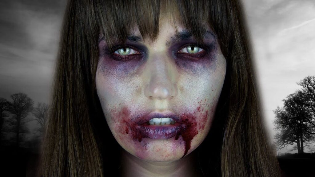 La piel de un zombie no es de un color saludable. Es pálida, descolorida y a menudo con matices verdosos o grisáceos que sugieren falta de vida o descomposición. Crear la base adecuada es esencial para todo el look.