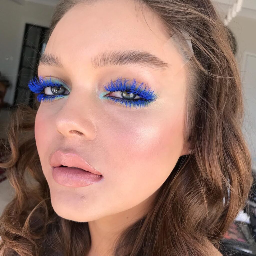 - Solo en las Pestañas Inferiores: Un toque de azul en las pestañas inferiores puede hacer que tus ojos resalten de una manera inesperada y moderna, manteniendo el resto del maquillaje de ojos muy limpio.