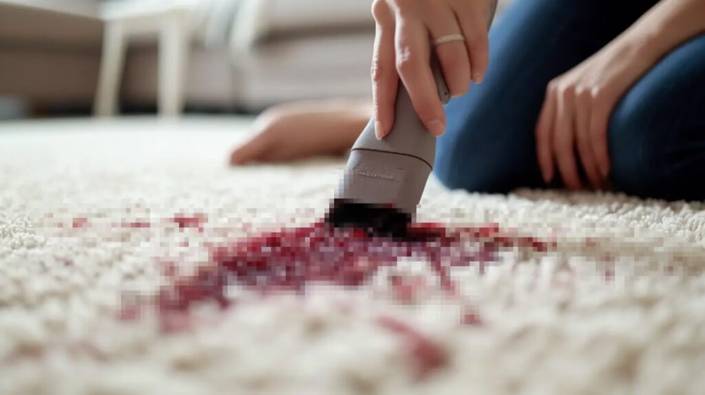- Dificultad de Eliminación Completa: La sangre puede penetrar en materiales porosos como alfombras, madera o tapicería, haciendo que su eliminación total sea muy difícil sin el equipo y los productos adecuados. Los residuos biológicos pueden quedar ocultos, constituyendo un riesgo a largo plazo.