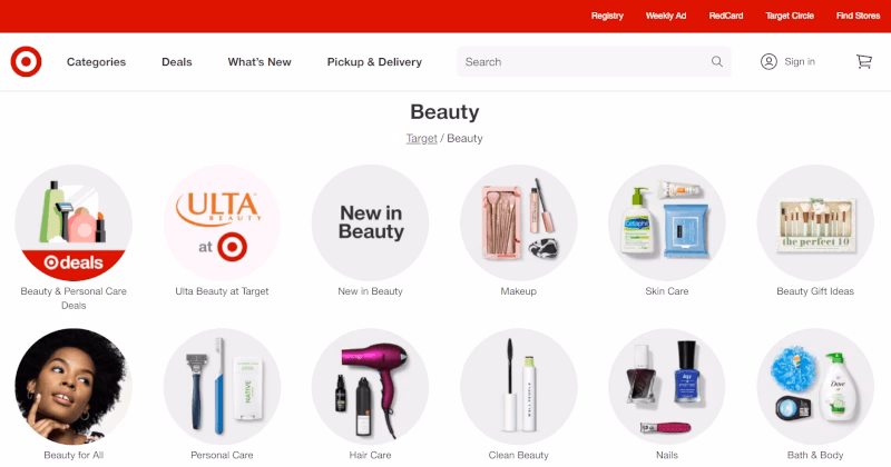 • Target: Una gran empresa de eCommerce con productos de belleza de alta calidad y estándares probados. Dispone de muchos almacenes en EE. UU. para entregas rápidas y un programa de membresía 'Red Card' con descuentos y extensión de política de devolución.