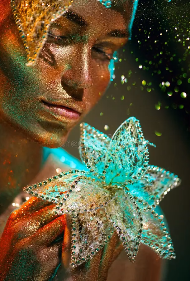 La aplicación de oro, ya sea en polvo, crema o incluso finas escamas (usadas con extrema moderación y un adhesivo adecuado, quizás solo un toque en el lagrimal o en el centro del labio) puede ser una forma de experimentar con texturas y brillos para ocasiones especiales, manteniendo siempre la intención de sutileza si ese es tu objetivo.