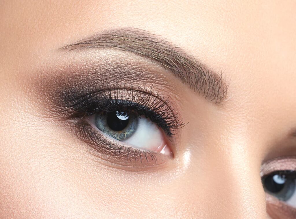 - Ojos: Considera pestañas postizas para intensificar la mirada (¡practica antes!). Aplica sombras, delineador y rímel. Usa rímel resistente al agua por si lloras. Rellena tus cejas.