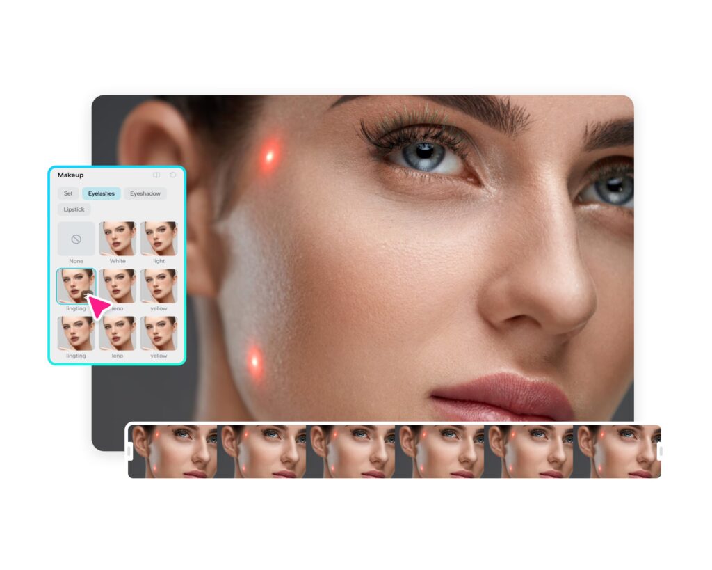 Una vez que el rostro está mapeado, la tecnología puede superponer texturas y colores de maquillaje virtualmente. Por ejemplo, para aplicar un labial, identifica el área de los labios en la malla y aplica el color y el brillo deseados, ajustándose a la forma única de los labios del usuario. Para las sombras de ojos, identifica el área del párpado y aplica el color y la intensidad seleccionados, respetando la forma del ojo.
