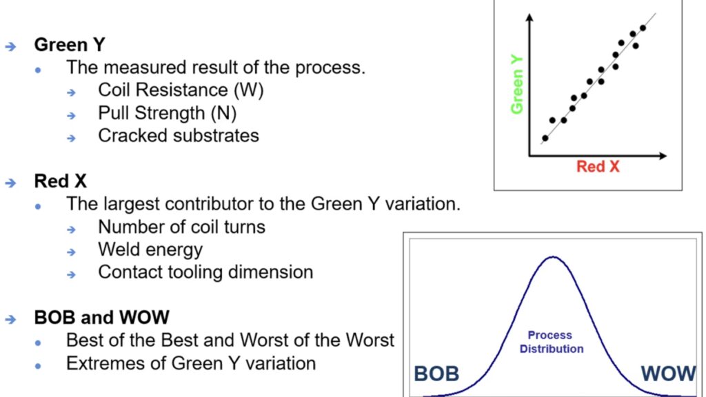 In the context of this methodology, the term, “Red X,” refers to the most critical and significant root cause of a problem. It represents the key factor (“Red X”) that, if addressed and resolved, will have the greatest impact on the measured output (“Green Y”), solving the problem and improving the process or product.