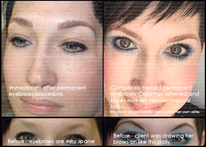 Inmediatamente después del procedimiento, el pigmento está en la superficie de la piel y mezclado con fluidos linfáticos y sangre, lo que lo hace parecer más oscuro y audaz. A medida que la piel sana, se forma una costra o una capa muy fina sobre el pigmento. Cuando esta capa se desprende, el color debajo puede parecer muy claro o incluso haber desaparecido temporalmente (esto es común con el delineado de ojos) porque una nueva capa de piel lo cubre. A medida que esta nueva piel madura y se vuelve más transparente en las semanas siguientes, el color del pigmento reaparecerá y se asentará en su tono final.