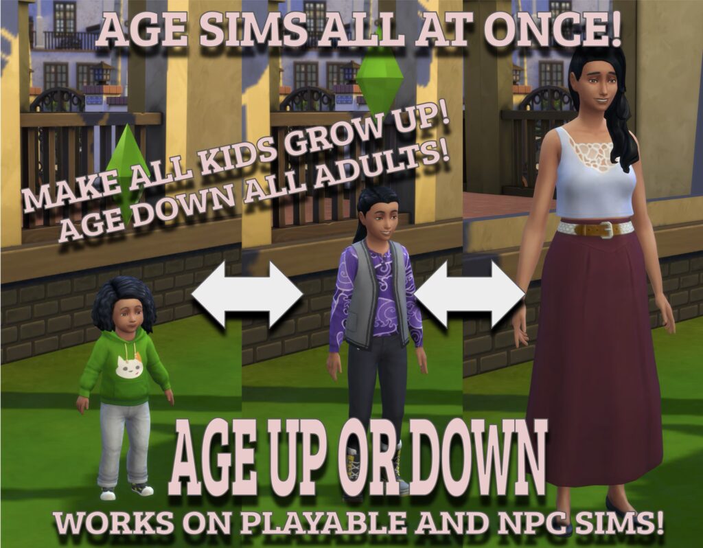 - Progreso de habilidades y relaciones: Un sim que envejece instantáneamente no pasa por el tiempo necesario para desarrollar habilidades o construir relaciones de forma natural en esa etapa. Podrías necesitar usar otros trucos o mods para ajustar estos aspectos si buscas una progresión más "completa".
