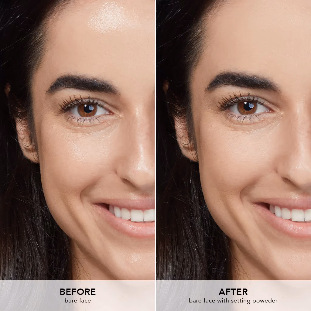 8. Sellado (Opcional): Si sientes que necesitas un poco más de duración o control de brillo en la zona T, aplica una pequeña cantidad de polvos traslúcidos o con acabado soft focus solo en esas áreas. Utiliza una brocha grande y suelta para no saturar la piel y mantener el acabado luminoso. Un spray fijador con acabado radiante o hidratante puede ayudar a que todo se funda y dure más.