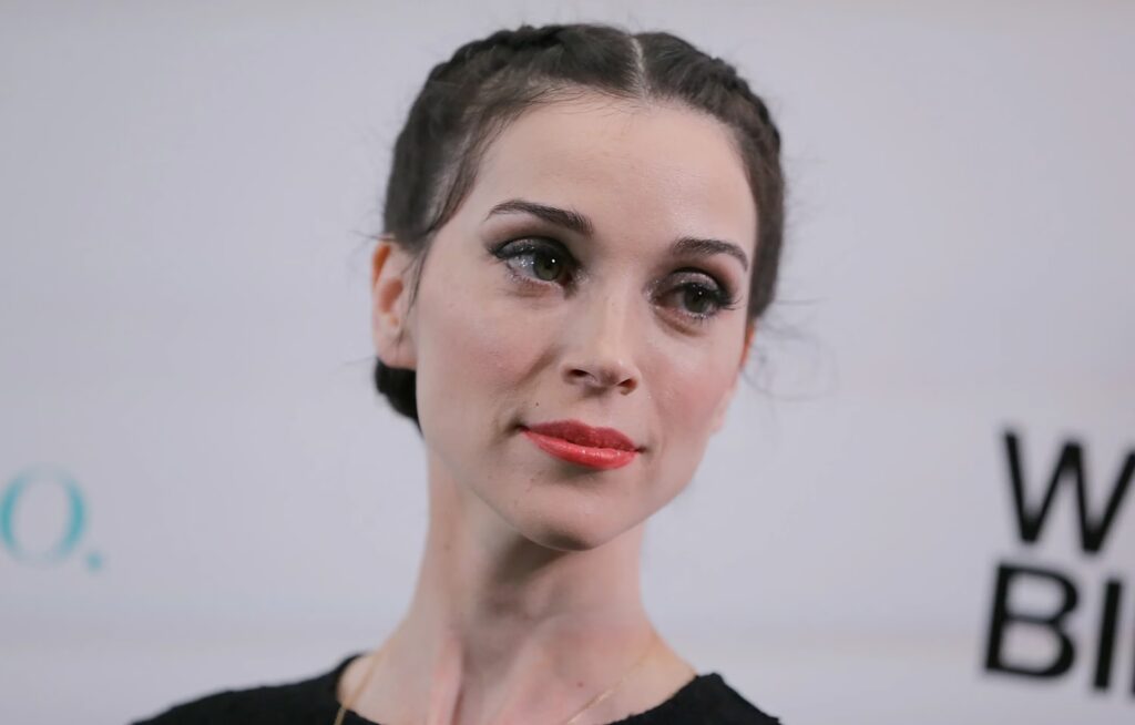 Además de elegir tonos que le favorecen, St. Vincent presta atención a cómo su labial complementa su atuendo. Esta coordinación entre maquillaje y vestuario es clave en la construcción de su imagen, mostrando una cohesión estilística que es a la vez pensada y aparentemente effortless.